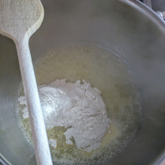 Brokkoli und Béchamel vermischen und nochmals abschmecken.