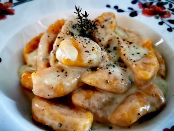 Kürbis und Gorgonzola – eine himmlisches Dreamteam! Durch die Kombination von gekochtem Kürbis und Ricotta werden die Gnocchi schön weich und flaumig.