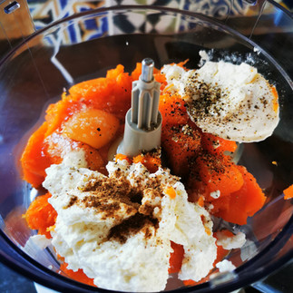 Den Kürbis in einer Küchenmaschine pürieren. Ricotta, Ei, Salz, Pfeffer und Muskatnuss zugeben und alles nochmals pürieren.